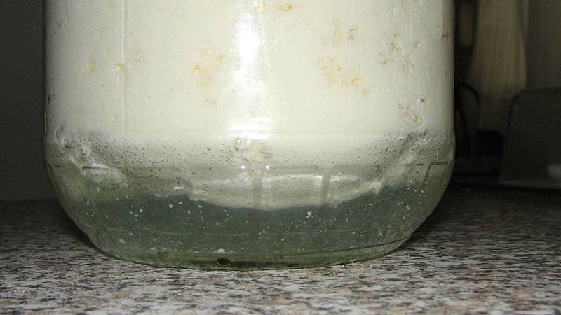 In the process of fermentation, Kefir grains increase in size. When the Kefir grains grow too much without increasing the amount of milk (or reducing the grains), it is likely to end up with Kefir where curd and whey get separated (see illustration below).